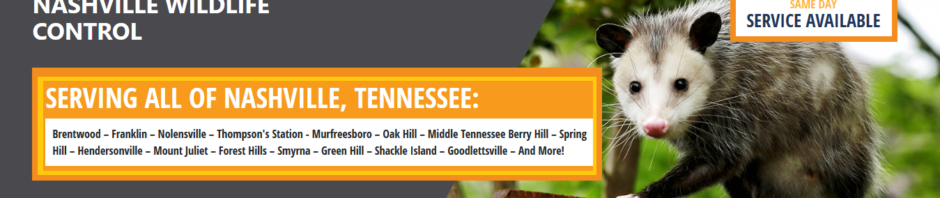Modern Wildlife Control has exciting news! We now serve all of Nashville, Tennessee! Our TWRA licensed and insured wildlife operators (Tennessee Wildlife Resource Agency) are fully-staffed and fully- equipped to provide a wide range of wild animal extraction and exclusion using state of the art, modern-day methods. Continue below to learn more about us, what we do, and how to get in touch for a free quote or advice, today!
